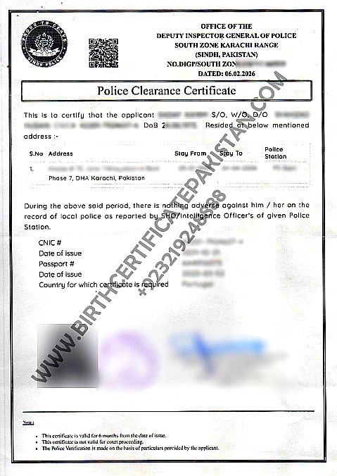 Police Clearance Certificate Karachi